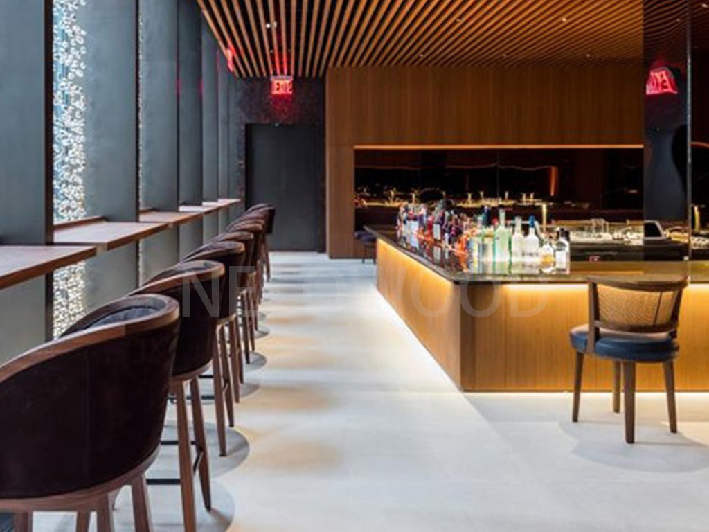 Jedes Decken- oder Wandpaneel von Necowood stellt eine Mischung aus künstlerischem Design und funktionaler Innovation dar. Die hohle Mehrkammerstruktur der Paneele reduziert die Wärmeübertragung und sorgt so für Wärmedämmung und Energieeinsparungen. Ihre feuerbeständigen und feuchtigkeitsbeständigen Eigenschaften machen sie zur bevorzugten Wahl für Innenräume wie Spas, Badezimmer, Schwimmbäder und Keller.